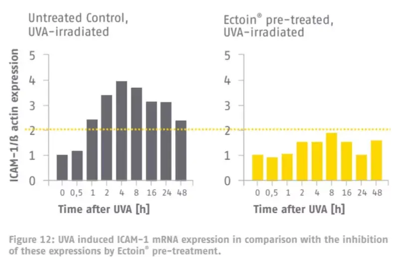 Крім того, ekdoline також може запобігти ланцюговій реакції, спричиненій UVA (довгохвильовим ультрафіолетовим) опроміненням, і запобігти мутації мт-ДНК, спричиненій UVA.
