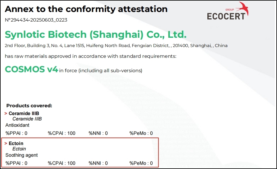 Нещодавно Yikeduoyin, вироблений Shanghai Yunluo, отримав натуральний сертифікат ЄС COSMOS, наданий ECOCERT у Франції.