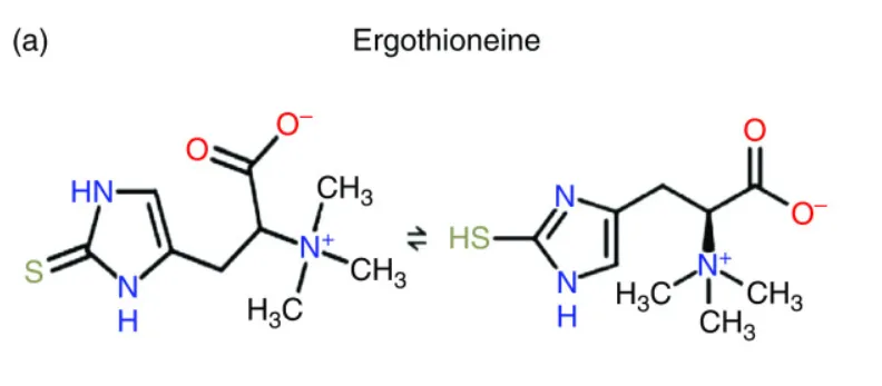 Ерготіонеїн (EGT) — це природна амінокислота, яка існує як у тіоловій, так і в тіоновій формах ізомерних структур. Ізомер тіону переважає при фізіологічному pH, що надає ерготіонеїну винятково сильних антиоксидантних властивостей.
