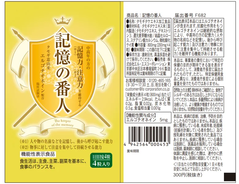 Добавка ерготіонеїн, запущена японською корпорацією LS, є продуктом, призначеним для лікування погіршення пам’яті у людей середнього та літнього віку.